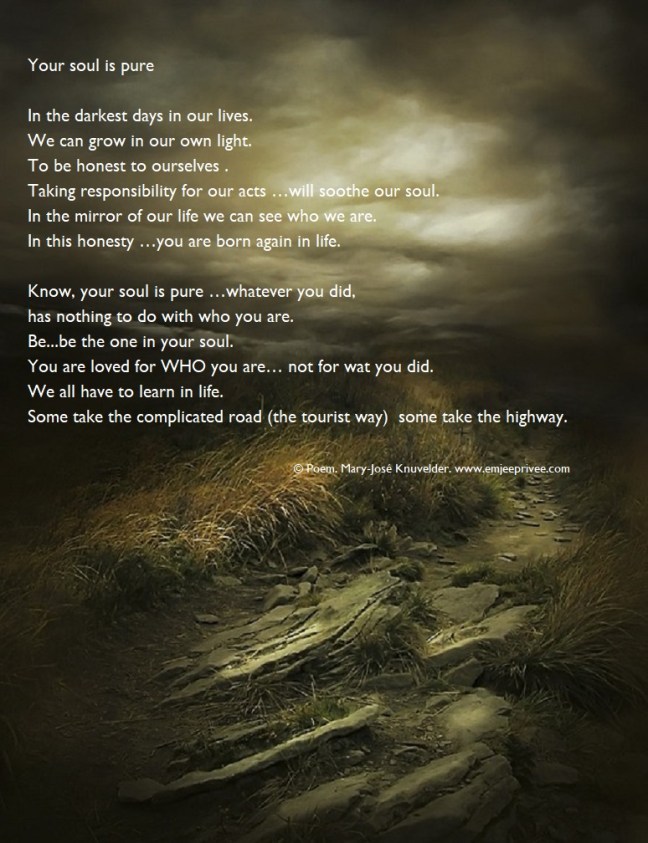 Poem: Your soul is pure Geplaatst op 24 januari 201912 april 2019 door Chantal Peters Voor een vergroting, klik op de afbeelding Delen: Klik om te delen op Facebook (Opent in een nieuw venster) Facebook Klik om op Pinterest te delen (Opent in een nieuw venster) Pinterest