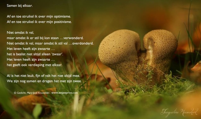 Gedicht: Samen bij elkaar Geplaatst op 1 februari 201912 april 2019 door Chantal Peters Voor een vergroting, klik op de afbeelding Delen: Klik om te delen op Facebook (Opent in een nieuw venster) Facebook Klik om op Pinterest te delen (Opent in een nieuw venster) Pinterest