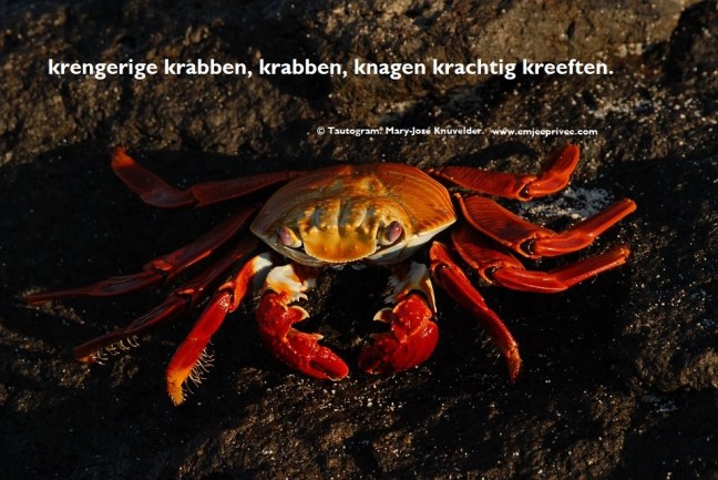 Tautogram: Krengerige krabben Geplaatst op 19 februari 201912 april 2019 door Chantal Peters Voor een vergroting, klik op de afbeelding Delen: Klik om te delen op Facebook (Opent in een nieuw venster) Facebook Klik om op Pinterest te delen (Opent in een nieuw venster) Pinterest