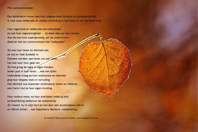 Gedicht: Mijn (schoon)moeder Geplaatst op 13 maart 201921 maart 2019 door Chantal Peters Voor een vergroting, klik op de afbeelding Delen: Klik om te delen op Facebook (Opent in een nieuw venster) Facebook Klik om op Pinterest te delen (Opent in een nieuw venster) Pinterest