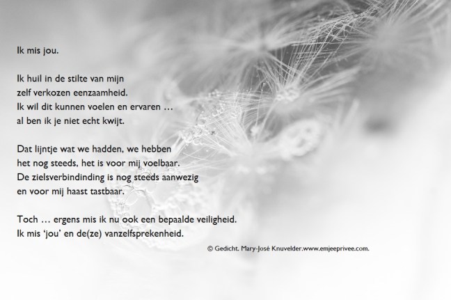 Gedicht: Ik mis jou Geplaatst op 7 april 201925 juli 2019 door mjknuvelder Voor een vergroting, klik op de afbeelding Delen: Klik om te delen op Facebook (Opent in een nieuw venster) Facebook Klik om op Pinterest te delen (Opent in een nieuw venster) Pinterest