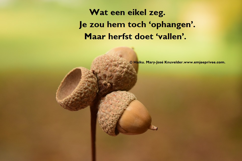 Haiku: Wat een eikel zeg Geplaatst op 9 april 201925 juli 2019 door mjknuvelder Voor een vergroting, klik op de afbeelding Delen: Klik om te delen op Facebook (Opent in een nieuw venster) Facebook Klik om op Pinterest te delen (Opent in een nieuw venster) Pinterest