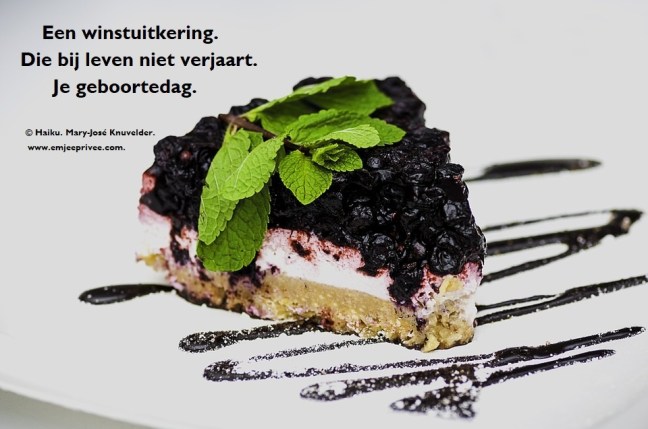 Haiku: Je geboortedag Geplaatst op 12 april 201925 juli 2019 door mjknuvelder Voor een vergroting, klik op de afbeelding Delen: Klik om te delen op Facebook (Opent in een nieuw venster) Facebook Klik om op Pinterest te delen (Opent in een nieuw venster) Pinterest