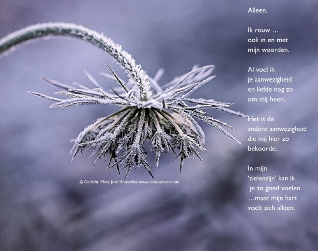 Gedicht: Alleen Geplaatst op 13 april 201925 juli 2019 door mjknuvelder Voor een vergroting, klik op de afbeelding Delen: Klik om te delen op Facebook (Opent in een nieuw venster) Facebook Klik om op Pinterest te delen (Opent in een nieuw venster) Pinterest