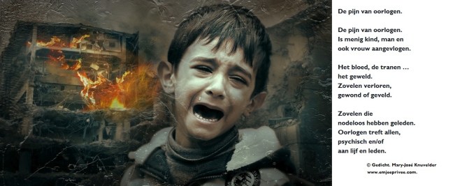 Gedicht: De pijn van oorlogen Geplaatst op 4 mei 20193 mei 2019 door mjknuvelder Voor een vergroting, klik op de afbeelding. Delen: Klik om te delen op Facebook (Opent in een nieuw venster) Facebook Klik om op Pinterest te delen (Opent in een nieuw venster) Pinterest