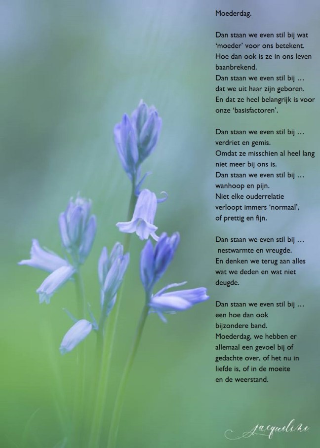 Gedicht: moederdag Geplaatst op 11 mei 20196 mei 2019 door mjknuvelder Voor een vergroting, klik op de afbeelding Delen: Klik om te delen op Facebook (Opent in een nieuw venster) Facebook Klik om op Pinterest te delen (Opent in een nieuw venster) Pinterest