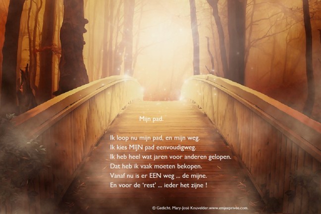 Gedicht: mijn pad Geplaatst op 1 juli 20194 juli 2019 door mjknuvelder Voor een vergroting, klik op de afbeelding Delen: Klik om te delen op Facebook (Opent in een nieuw venster) Facebook Klik om op Pinterest te delen (Opent in een nieuw venster) Pinterest