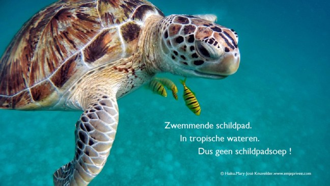 Haiku: dus géén schilpaddensoep Geplaatst op 15 juli 20194 juli 2019 door mjknuvelder Voor een vergroting, klik op de afbeelding Delen: Klik om te delen op Facebook (Opent in een nieuw venster) Facebook Klik om op Pinterest te delen (Opent in een nieuw venster) Pinterest