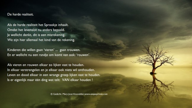 Gedicht: de harde realiteit Geplaatst op 20 juli 20194 juli 2019 door mjknuvelder Voor een vergroting, klik op de afbeelding Delen: Klik om te delen op Facebook (Opent in een nieuw venster) Facebook Klik om op Pinterest te delen (Opent in een nieuw venster) Pinterest