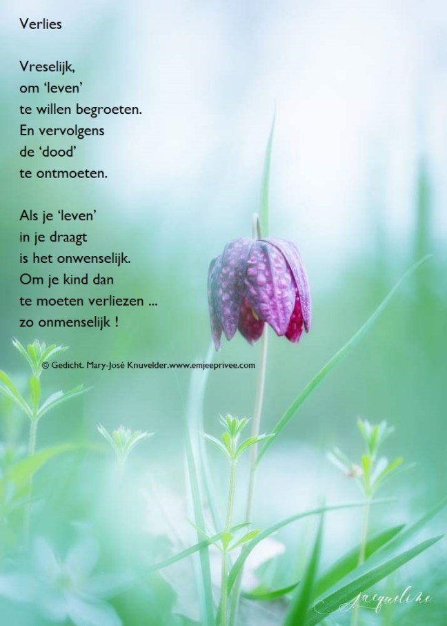 Gedicht: verlies Geplaatst op 22 juli 20194 juli 2019 door mjknuvelder Voor een vergroting, klik op de afbeelding Delen: Klik om te delen op Facebook (Opent in een nieuw venster) Facebook Klik om op Pinterest te delen (Opent in een nieuw venster) Pinterest