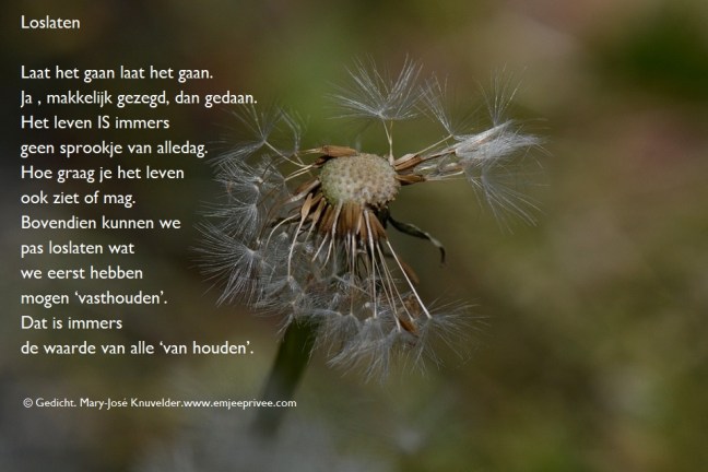 Gedicht: loslaten Geplaatst op 30 augustus 201925 augustus 2019 door mjknuvelder Voor een vergroting, klik op de afbeelding Delen: Klik om te delen op Facebook (Opent in een nieuw venster) Facebook Klik om op Pinterest te delen (Opent in een nieuw venster) Pinterest
