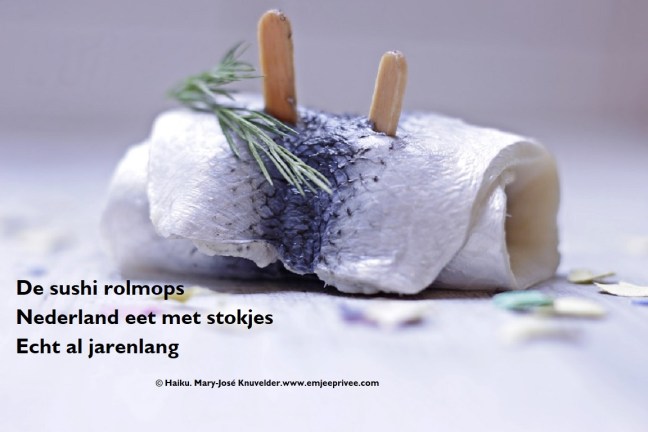 Haiku. de sushi rolmops Geplaatst op 13 oktober 20191 oktober 2019 door mjknuvelder Voor een vergroting, klik op de afbeelding Delen: Klik om te delen op Facebook (Opent in een nieuw venster) Facebook Klik om op Pinterest te delen (Opent in een nieuw venster) Pinterest
