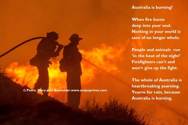 Poem. Australia is burning Geplaatst op 10 januari 20209 januari 2020 door mjknuvelder Voor een vergroting, klik op de afbeelding Delen: Klik om te delen op Facebook (Opent in een nieuw venster) Facebook Klik om op Pinterest te delen (Opent in een nieuw venster) Pinterest