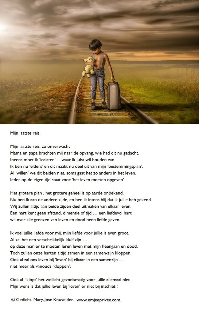 Gedicht. Mijn laatste reis. (ongeluk met de Stint) Geplaatst op 13 februari 20208 november 2019 door mjknuvelder Voor een vergroting, klik op de afbeelding Delen: Klik om te delen op Facebook (Opent in een nieuw venster) Facebook Klik om op Pinterest te delen (Opent in een nieuw venster) Pinterest