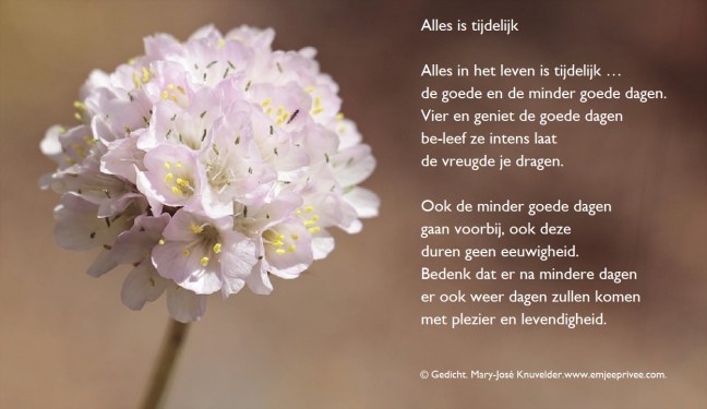 Gedicht. Alles is tijdelijk Geplaatst op 17 maart 202010 november 2019 door mjknuvelder Voor een vergroting, klik op de afbeelding Delen: Share op Facebook (Opent in een nieuw venster) Facebook Delen op Pinterest (Opent in een nieuw venster) Pinterest