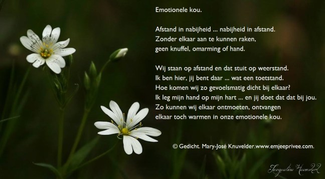 Gedicht. Emotionele kou. Geplaatst op 21 april 202014 april 2020 door mjknuvelder Voor een vergroting, klik op de afbeelding Delen: Klik om te delen op Facebook (Opent in een nieuw venster) Facebook Klik om op Pinterest te delen (Opent in een nieuw venster) Pinterest