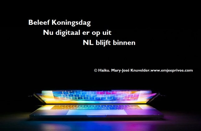 Haiku. Beleef Koningsdag Geplaatst op 27 april 202026 april 2020 door mjknuvelder Voor een vergroting, klik op de afbeelding Delen: Klik om te delen op Facebook (Opent in een nieuw venster) Facebook Klik om op Pinterest te delen (Opent in een nieuw venster) Pinterest
