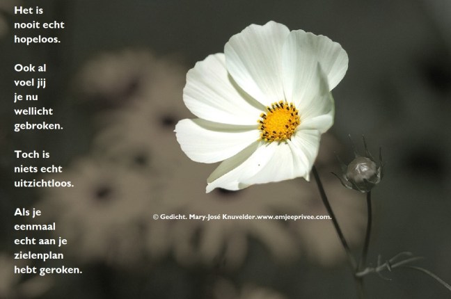 Gedicht. het is nooit hopeloos … Geplaatst op 15 mei 202028 december 2019 door mjknuvelder Voor een vergroting, klik op de afbeelding Delen: Klik om te delen op Facebook (Opent in een nieuw venster) Facebook Klik om op Pinterest te delen (Opent in een nieuw venster) Pinterest