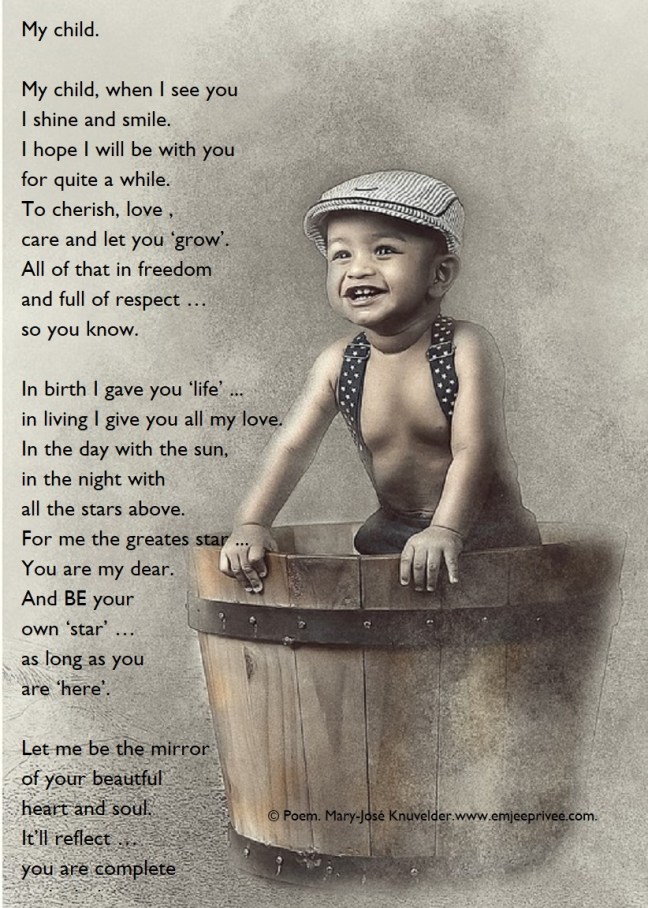 Poem. My child Geplaatst op 20 mei 20205 november 2019 door mjknuvelder Voor een vergroting, klik op de afbeelding Delen: Klik om te delen op Facebook (Opent in een nieuw venster) Facebook Klik om op Pinterest te delen (Opent in een nieuw venster) Pinterest