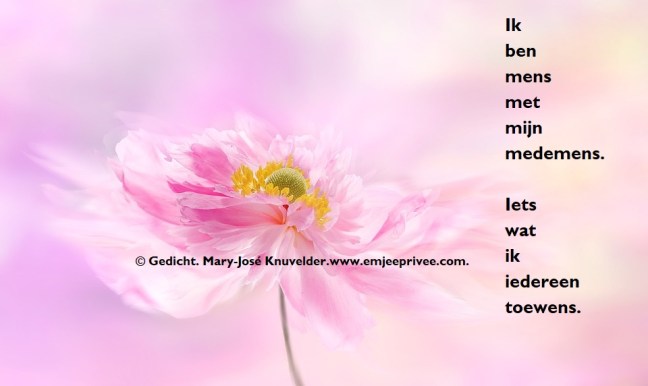 Gedicht. Ik ben mens . Geplaatst op 28 oktober 202010 juni 2020 door mjknuvelder Voor een vergroting, klik op de afbeelding Delen: Klik om te delen op Facebook (Opent in een nieuw venster) Facebook Klik om op Pinterest te delen (Opent in een nieuw venster) Pinterest