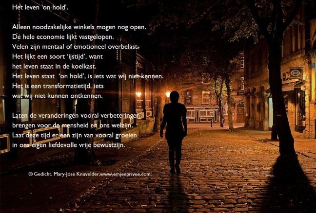 Gedicht. Het leven ‘on hold’. Geplaatst op 3 januari 20212 januari 2021 door mjknuvelder Voor een vergroting, klik op de afbeelding. Delen: Klik om te delen op Facebook (Opent in een nieuw venster) Facebook Klik om op Pinterest te delen (Opent in een nieuw venster) Pinterest