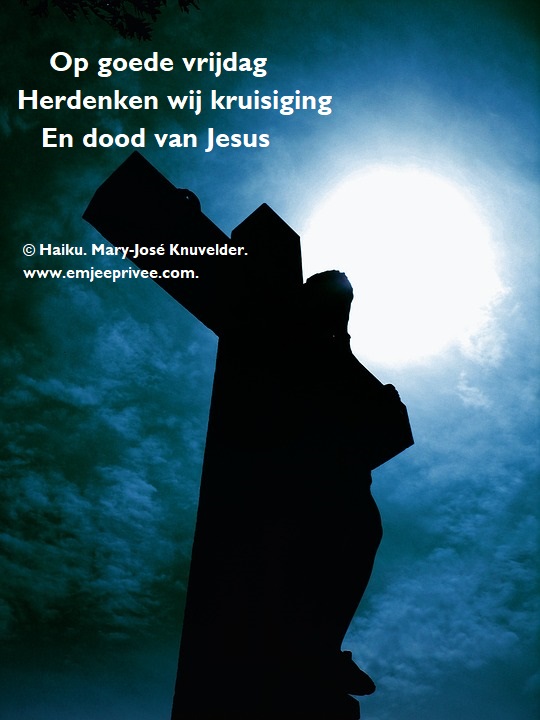 Haiku. Op goede vrijdag. Geplaatst op 2 april 20211 april 2021 door mjknuvelder Voor een vergroting, klik op de afbeelding Delen: Klik om te delen op Facebook (Opent in een nieuw venster) Facebook Klik om op Pinterest te delen (Opent in een nieuw venster) Pinterest