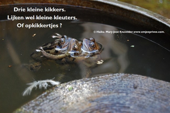 Haiku. Drie kleine kikkers. Geplaatst op 1 mei 20217 maart 2021 door mjknuvelder Voor een vergroting, klik op de afbeelding Delen: Klik om te delen op Facebook (Opent in een nieuw venster) Facebook Klik om op Pinterest te delen (Opent in een nieuw venster) Pinterest