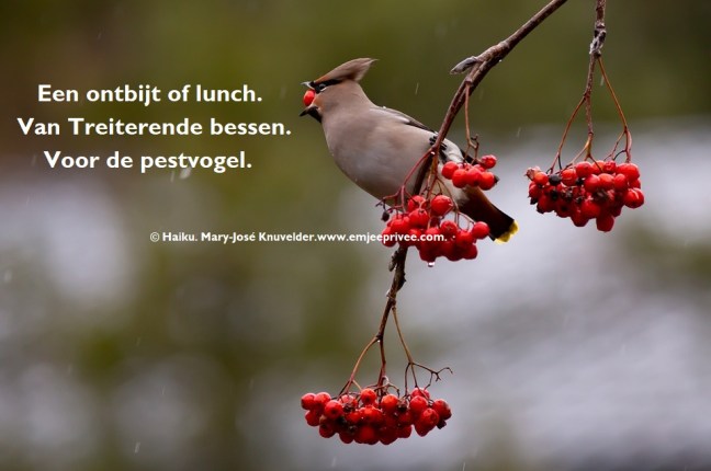 Haiku. Ontbijt of lunch. Geplaatst op 9 mei 20217 maart 2021 door mjknuvelder Voor een vergroting, klik op de afbeelding Delen: Klik om te delen op Facebook (Opent in een nieuw venster) Facebook Klik om op Pinterest te delen (Opent in een nieuw venster) Pinterest