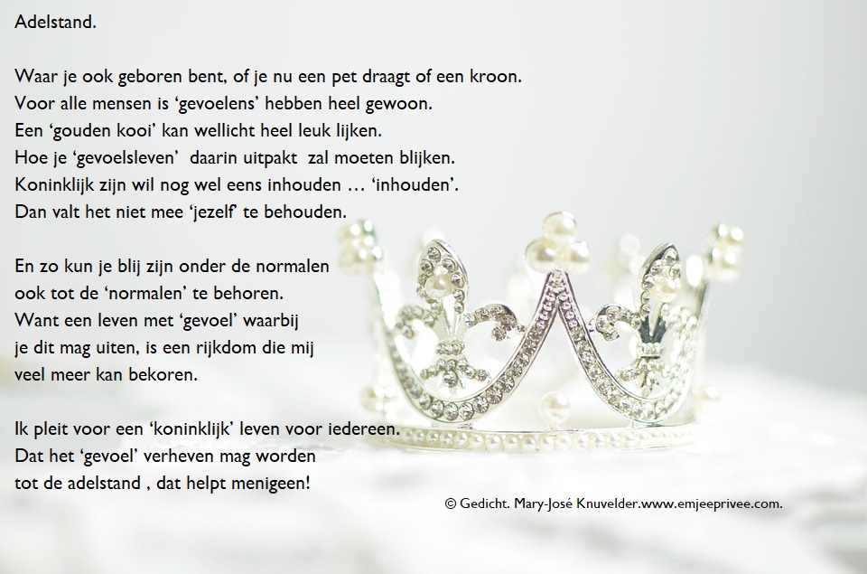 Gedicht. Adelstand. Geplaatst op 16 mei 20211 april 2021 door mjknuvelder Voor een vergroting, klik op de afbeeld Delen: Klik om te delen op Facebook (Opent in een nieuw venster) Facebook Klik om op Pinterest te delen (Opent in een nieuw venster) Pinterest