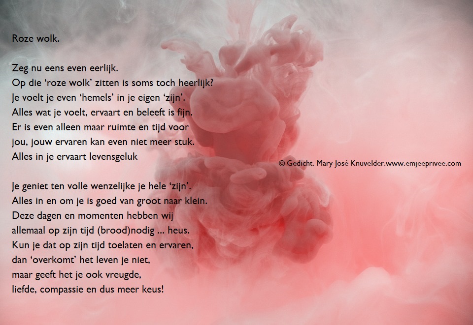 Gedicht. Roze wolk Geplaatst op 19 mei 202117 april 2022 door mjknuvelder Voor een vergroting, klik op de afbeelding. Delen: Klik om te delen op Facebook (Opent in een nieuw venster) Facebook Klik om op Pinterest te delen (Opent in een nieuw venster) Pinterest