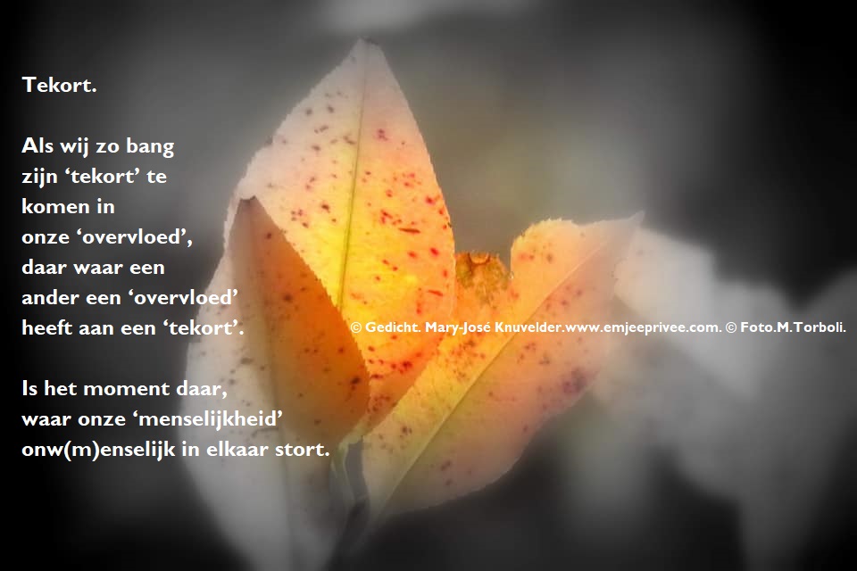 Gedicht. Tekort Geplaatst op 23 juli 202124 april 2021 door mjknuvelder Voor een vergroting, klik op de afbeelding. Delen: Klik om te delen op Facebook (Opent in een nieuw venster) Facebook Klik om op Pinterest te delen (Opent in een nieuw venster) Pinterest