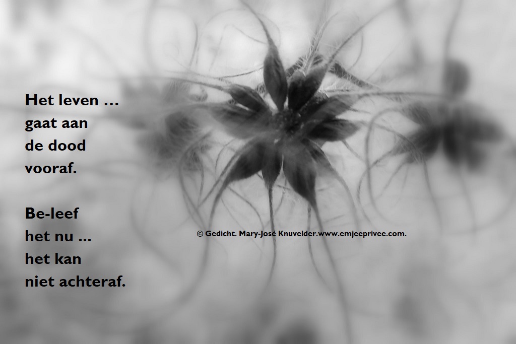 Gedicht. Het leven gaat aan de dood vooraf Geplaatst op 25 juli 202124 april 2021 door mjknuvelder Voor een vergroting, klik op de afbeelding. Delen: Klik om te delen op Facebook (Wordt in een nieuw venster geopend) Facebook Klik om op Pinterest te delen (Wordt in een nieuw venster geopend) Pinterest