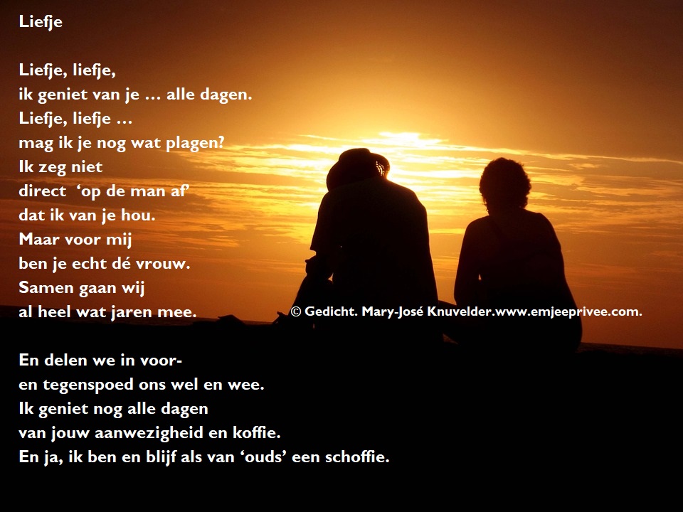 Gedicht. Liefje Geplaatst op 28 september 202122 september 2021 door mjknuvelder Voor een vergroting, klik op de afbeelding. Delen: Klik om te delen op Facebook (Opent in een nieuw venster) Facebook Klik om op Pinterest te delen (Opent in een nieuw venster) Pinterest