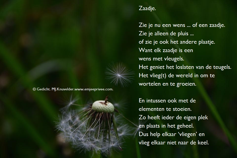 Gedicht. Zaadje. Geplaatst op 4 november 202221 oktober 2022 door mjknuvelder Voor een vergroting, klik op de afbeelding Delen: Klik om te delen op Facebook (Opent in een nieuw venster) Facebook Klik om op Pinterest te delen (Opent in een nieuw venster) Pinterest
