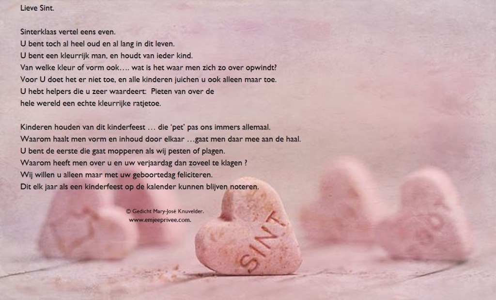 Lieve Sint, hopelijk komt u nog jaren en jaren met uw Pieten naar ons kleine kikkerlandje 🙏🙏😘😘 LikeLike