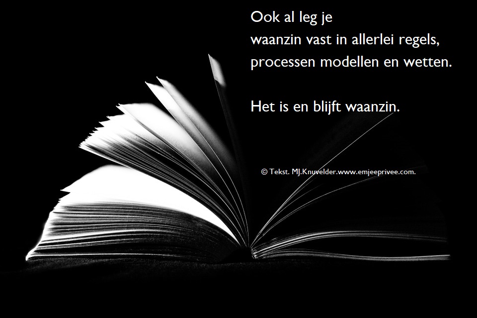 Ik begrijp vele regelgeving niet. Blijf ik waanzinnig ervaren. Wel goed, dat er regels/ wetten uitgevaardigd zijn. Wat beperkt bepaald wat waanzin inhoud LikeGeliked door 1 persoon