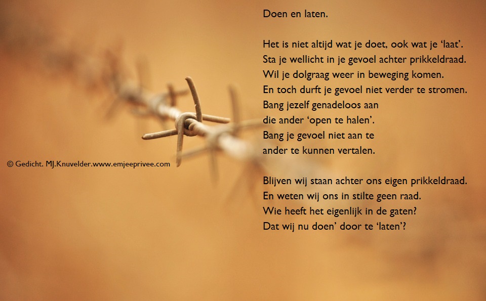 Gedicht. Doen en laten Geplaatst op 15 januari 202321 december 2022 door mjknuvelder Voor een vergroting, klik op de afbeelding. Delen: Klik om te delen op Facebook (Opent in een nieuw venster) Facebook Klik om op Pinterest te delen (Opent in een nieuw venster) Pinterest