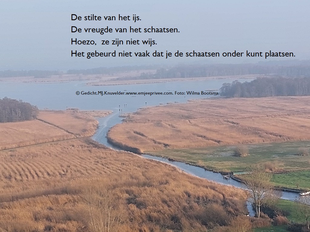 Gedicht. De stilte van het ijs Geplaatst op 22 januari 202329 december 2022 door mjknuvelder Voor een vergroting, klik op de afbeelding. Delen: Klik om te delen op Facebook (Opent in een nieuw venster) Facebook Klik om op Pinterest te delen (Opent in een nieuw venster) Pinterest