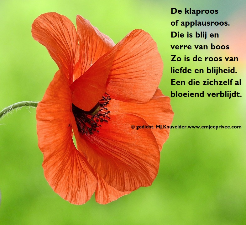 Gedicht. De klaproos Geplaatst op 27 juni 202323 juni 2023 door mjknuvelder Voor een vergroting, klik op de afbeelding Delen: Klik om te delen op Facebook (Opent in een nieuw venster) Facebook Klik om op Pinterest te delen (Opent in een nieuw venster) Pinterest