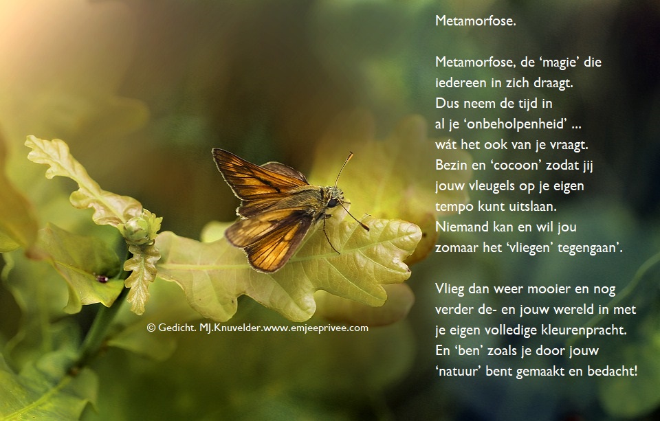 Gedicht. Metamorfose Geplaatst op 16 oktober 202318 september 2023 door mjknuvelder Voor een vergroting, klik op de afbeelding Delen: Klik om te delen op Facebook (Opent in een nieuw venster) Facebook Klik om op Pinterest te delen (Opent in een nieuw venster) Pinterest