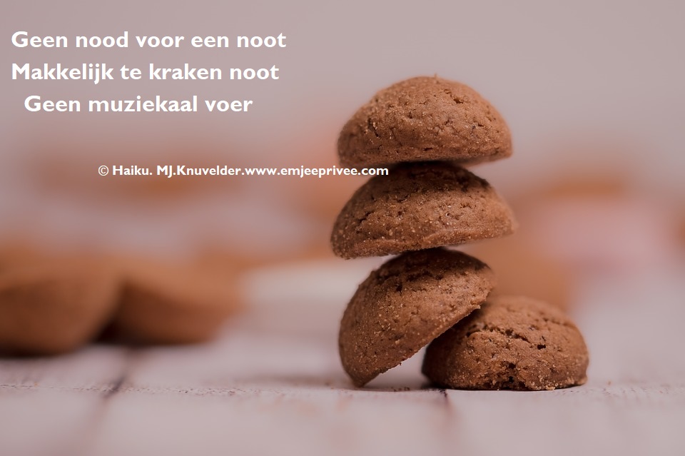 Haiku. Geen nood voor een noot Geplaatst op 30 november 202326 november 2023 door mjknuvelder Voor een vergroting, klik op de afbeelding Delen: Klik om te delen op Facebook (Opent in een nieuw venster) Facebook Klik om op Pinterest te delen (Opent in een nieuw venster) Pinterest