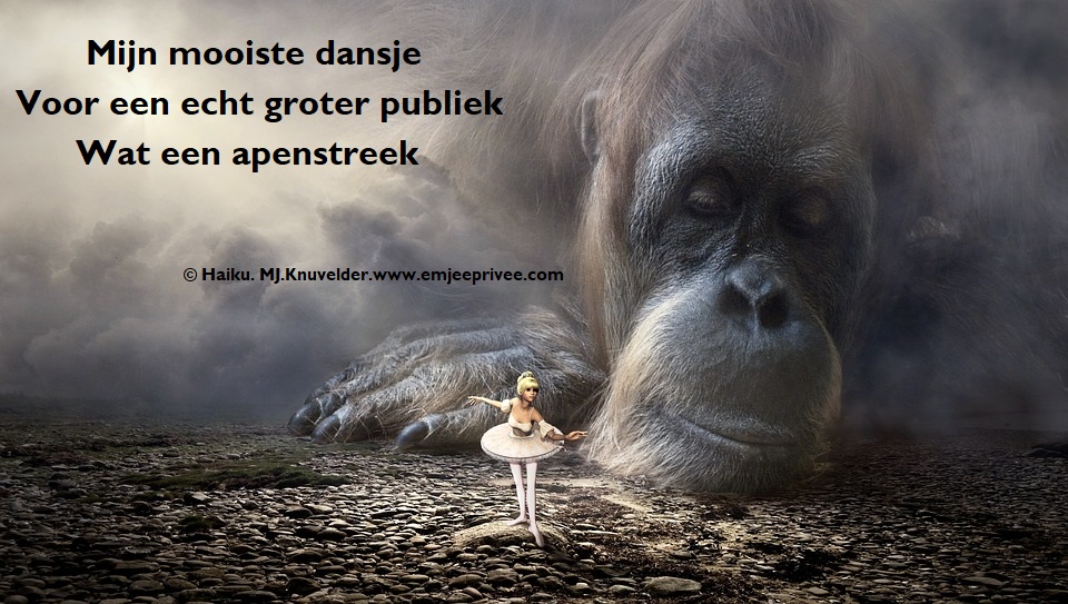 Haiku. Mijn mooiste dansje Geplaatst op 28 januari 20243 januari 2024 door mjknuvelder Voor een vergroting, klik op de afbeelding Delen: Klik om te delen op Facebook (Opent in een nieuw venster) Facebook Klik om op Pinterest te delen (Opent in een nieuw venster) Pinterest