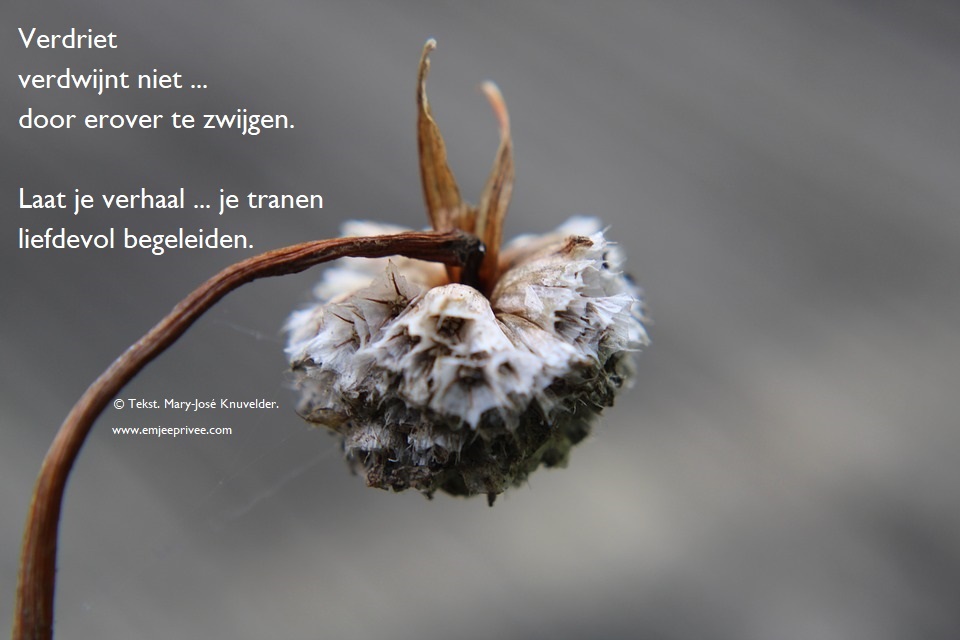 Klopt helemaal, heb mijn verhaal gedaan, mijn tranen laten lopen en nu …….. het verdriet is er nog maar bepaald mijn leven niet meer.