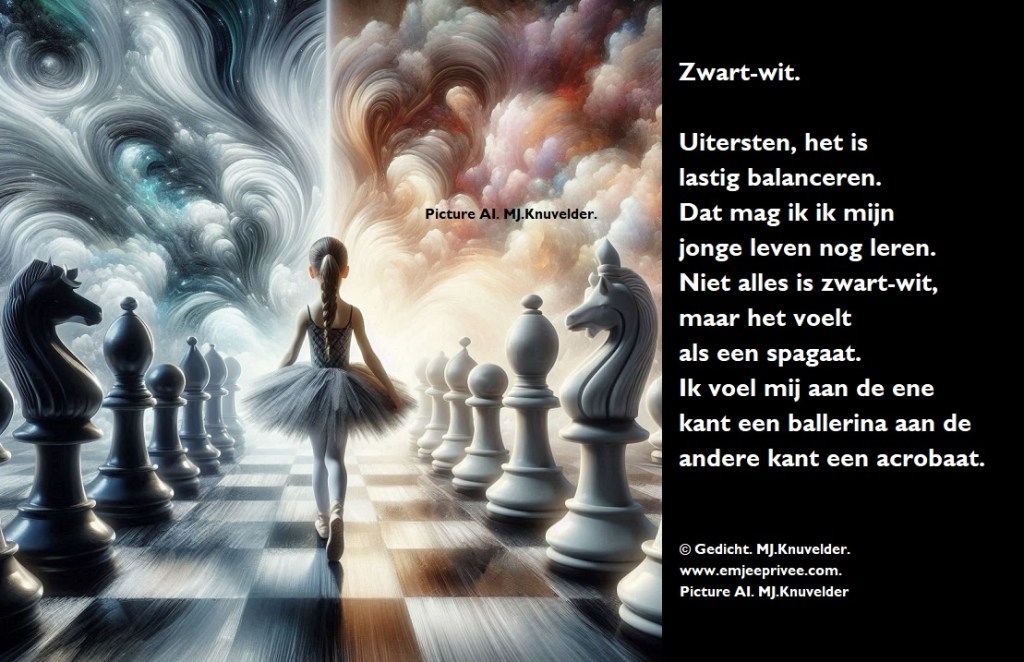 Gedicht. Zwart-wit Geplaatst op 7 februari 202429 november 2024 door mjknuvelder Delen: Klik om te delen op Facebook (Opent in een nieuw venster) Facebook Klik om op Pinterest te delen (Opent in een nieuw venster) Pinterest