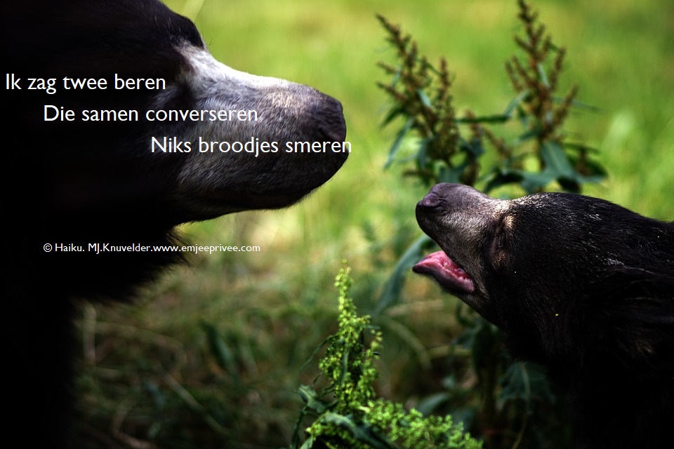Haiku. Ik zag twee beren Geplaatst op 16 maart 20242 maart 2024 door mjknuvelder Voor een vergroting, klik op de afbeelding Delen: Klik om te delen op Facebook (Opent in een nieuw venster) Facebook Klik om op Pinterest te delen (Opent in een nieuw venster) Pinterest