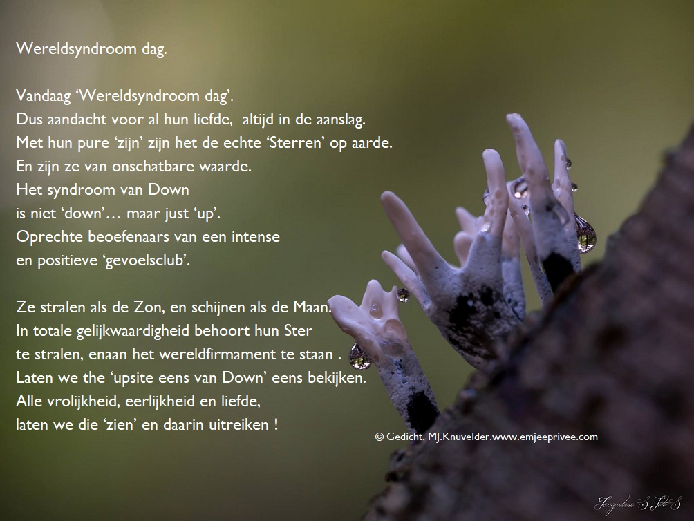 Gedicht. Wereldsyndroom dag Geplaatst op 21 maart 2024 door mjknuvelder Voor een vergroting, klik op de afbeelding Delen: Klik om te delen op Facebook (Opent in een nieuw venster) Facebook Klik om op Pinterest te delen (Opent in een nieuw venster) Pinterest