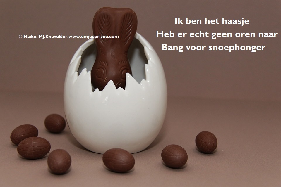 Haiku. Ik ben het haasje Geplaatst op 28 maart 202415 maart 2024 door mjknuvelder Voor een vergroting, klik op de afbeelding Delen: Klik om te delen op Facebook (Opent in een nieuw venster) Facebook Klik om op Pinterest te delen (Opent in een nieuw venster) Pinterest