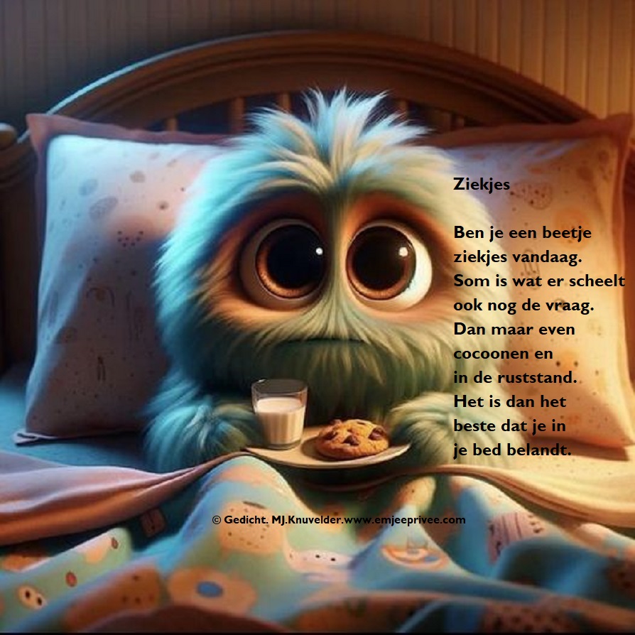 Gedicht. Ziekjes Geplaatst op 8 mei 20246 april 2024 door mjknuvelder Voor een vergroting, klik op de afbeelding Delen: Klik om te delen op Facebook (Opent in een nieuw venster) Facebook Klik om op Pinterest te delen (Opent in een nieuw venster) Pinterest
