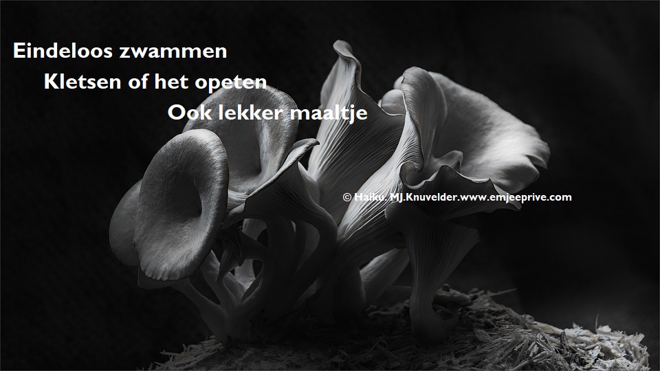 Haiku. Eindeloos zwammen Geplaatst op 21 juli 20243 april 2024 door mjknuvelder Voor een vergroting, klik op de afbeelding Delen: Klik om te delen op Facebook (Opent in een nieuw venster) Facebook Klik om op Pinterest te delen (Opent in een nieuw venster) Pinterest