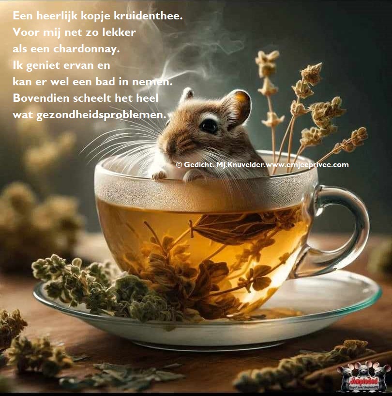 GEDICHT. Een heerlijk kopje kruidenthee Geplaatst op 29 juli 20242 mei 2024 door mjknuvelder Voor een vergroting, klik op de afbeelding Delen: Klik om te delen op Facebook (Opent in een nieuw venster) Facebook Klik om op Pinterest te delen (Opent in een nieuw venster) Pinterest